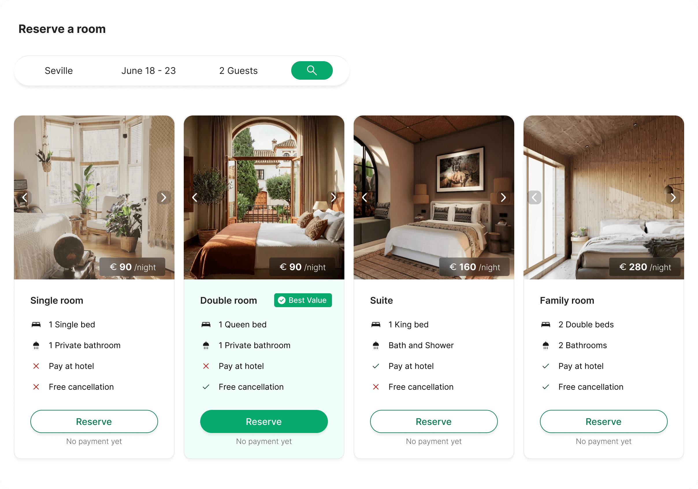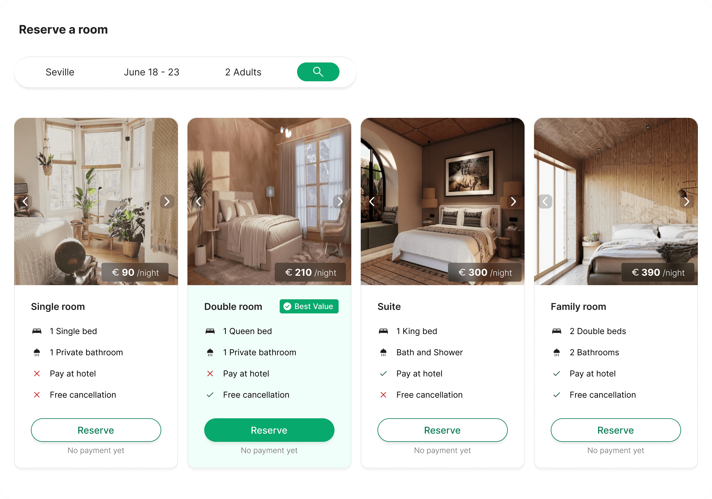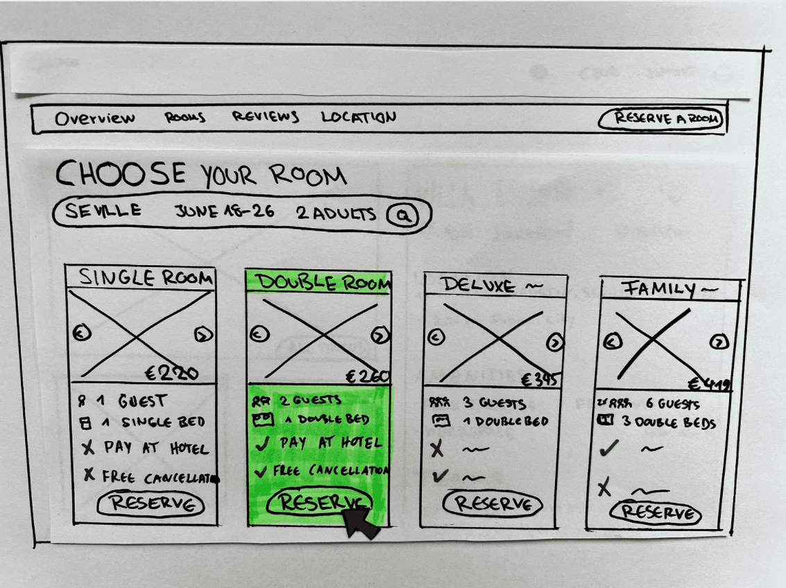 Before: Users had no way to compare rooms without scrolling back and forth. Room cards took up the full screen, key differences between rooms were unclear.