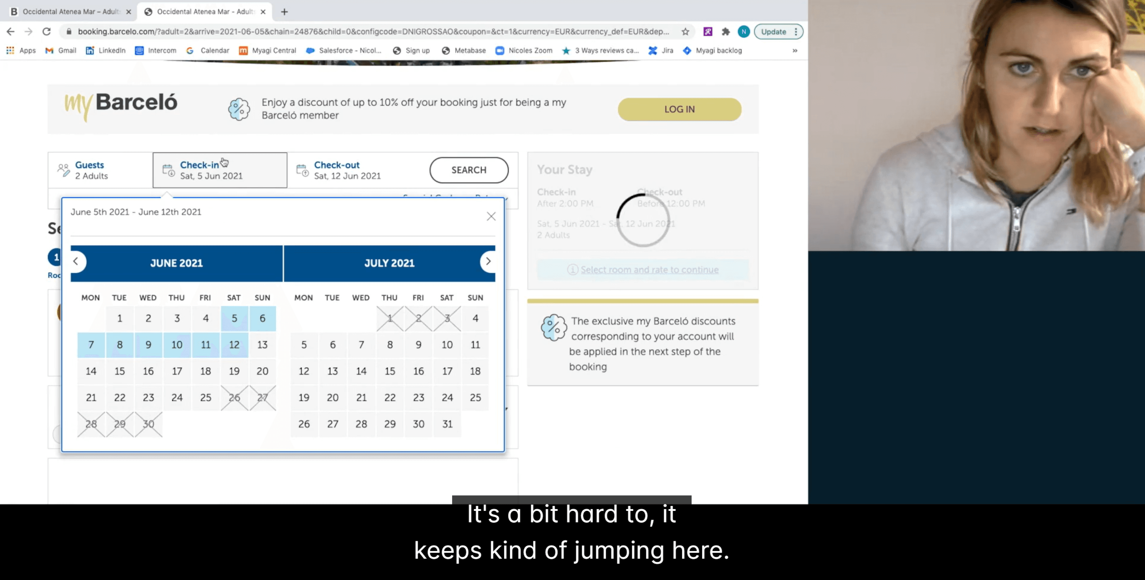 Before: A user struggled for nearly 2 minutes as the calendar switched fields unpredictably and the screen went blank repeatedly. She massaged her forehead and said: "I actually may just move on to a different website."