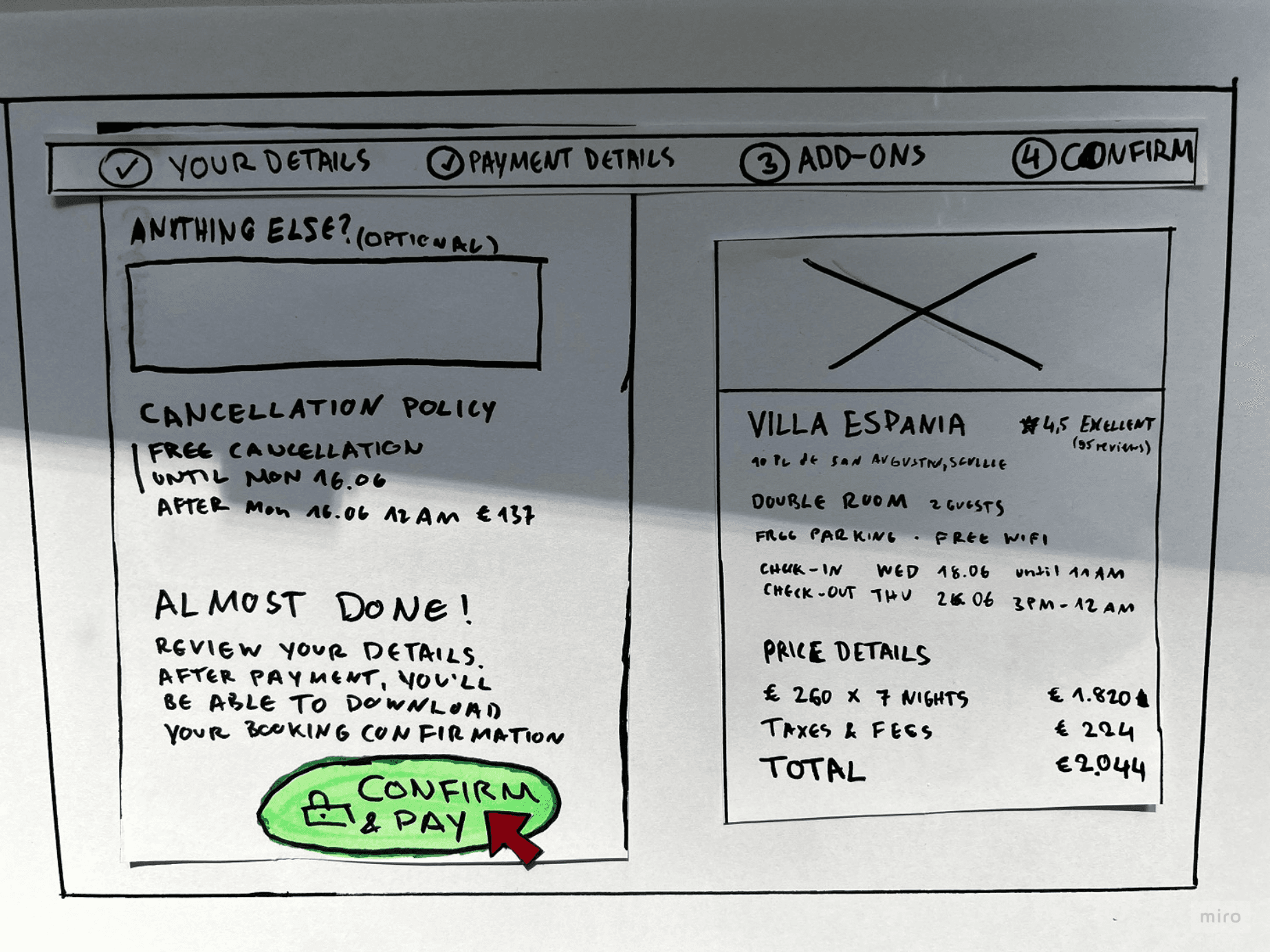 Key details like breakfast inclusion, location, and cancellation terms were not visible early enough to make a confident decision. When users had to search for these late in the journey, trust dropped and abandonment became more likely.