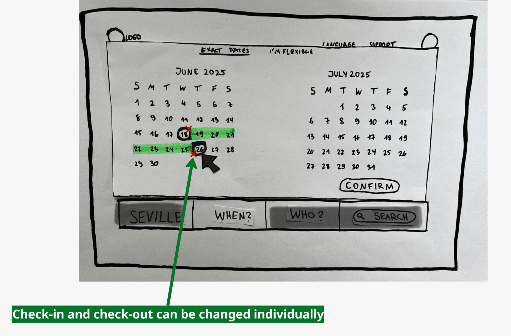 Users could not tell which field was active, so the calendar often felt unpredictable. This led to repeated attempts, longer time on task, and early drop-off before users even reached room selection.